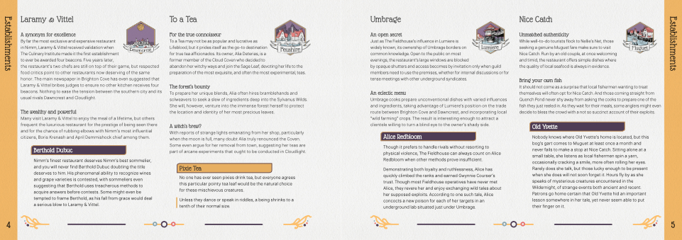 • Twelve establishments, one for each of Nimm’s main towns