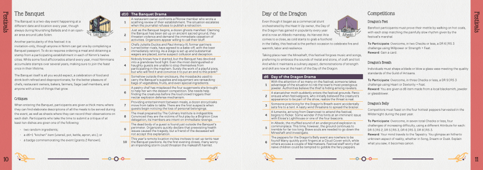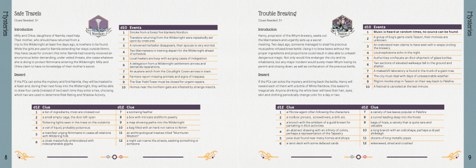 • Descriptions include story hooks, ingredients, NPCs